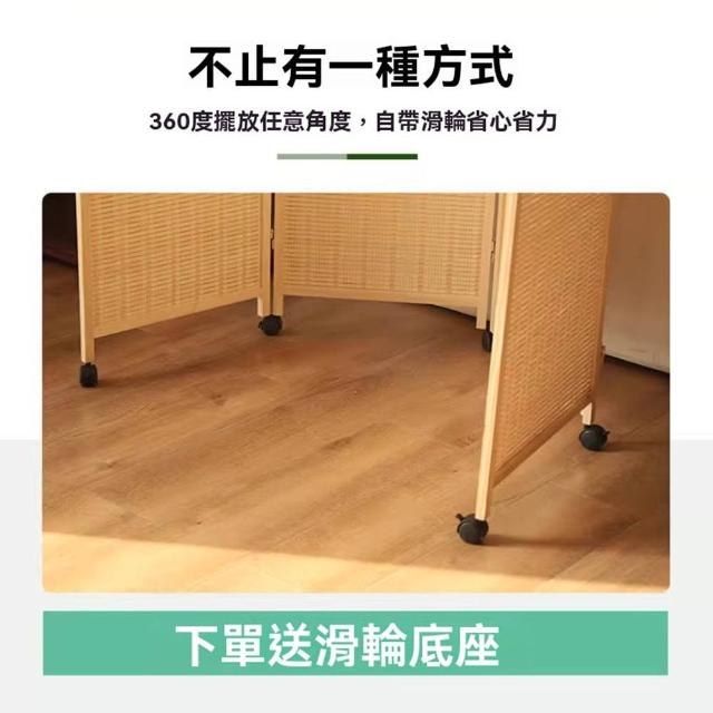 赫朗 竹編屏風 移動屏風 玄關屏風 折疊屏風 贈送輪子 實木框架 滑輪底座(免組裝/任意角度擺放/結實耐用)