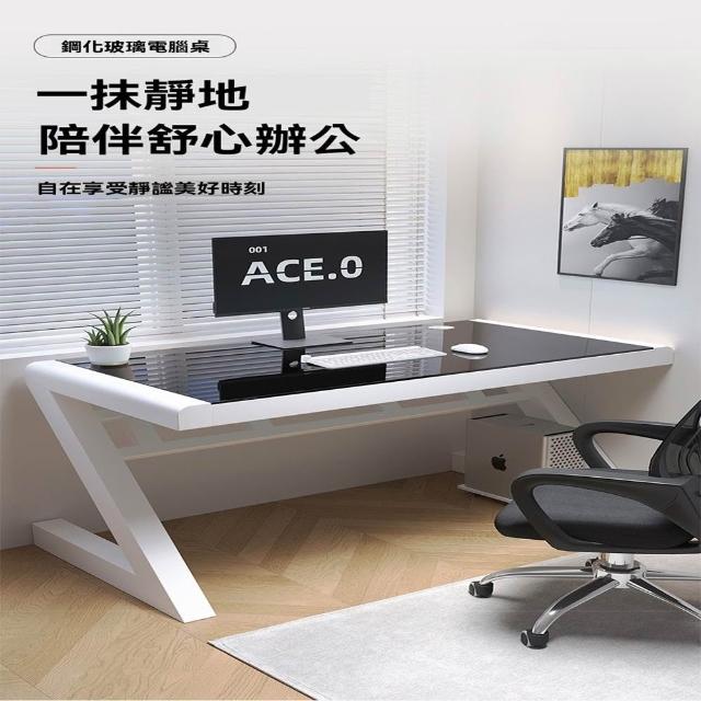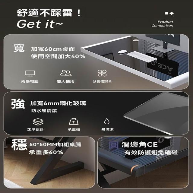 赫朗 鋼化玻璃電腦桌 辦公桌 寫字桌 書桌 加寬60cm桌面 防刮耐磨(6MM防爆鋼化玻璃/加固Z型桌腿/帶穿線孔)