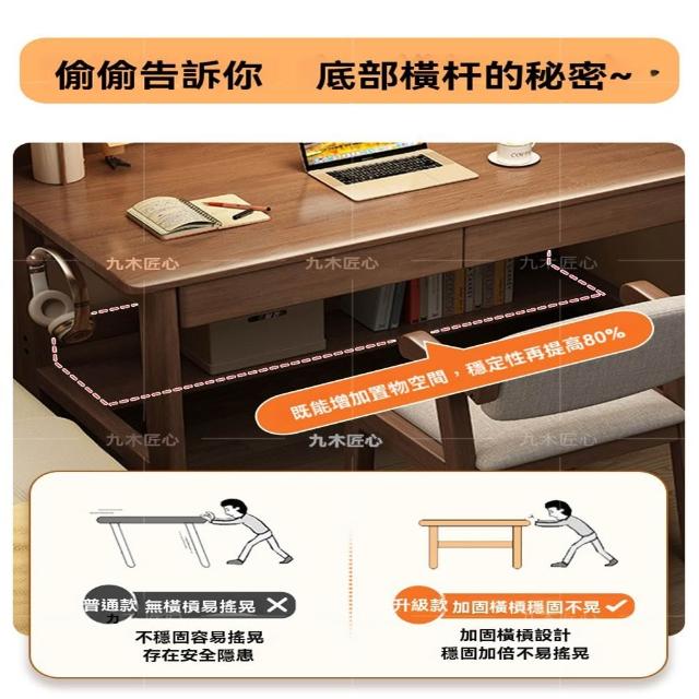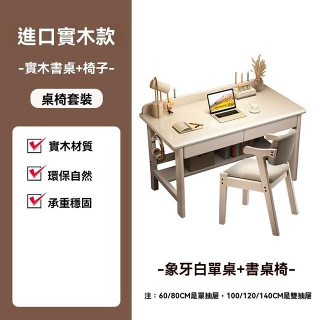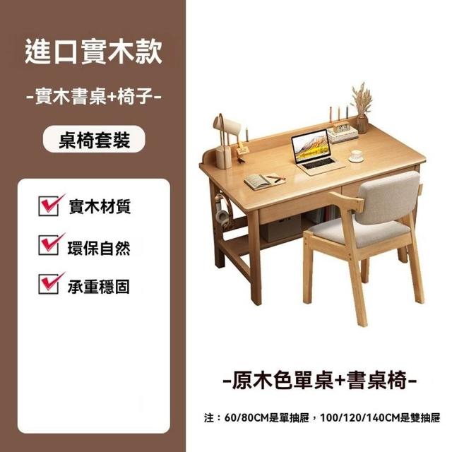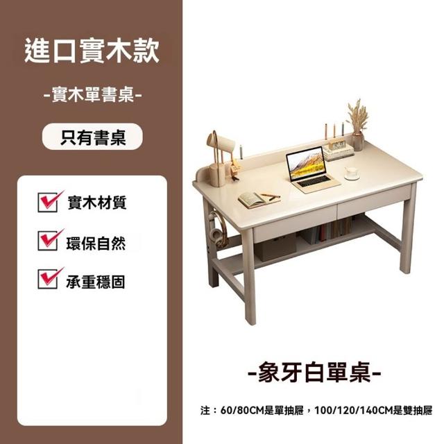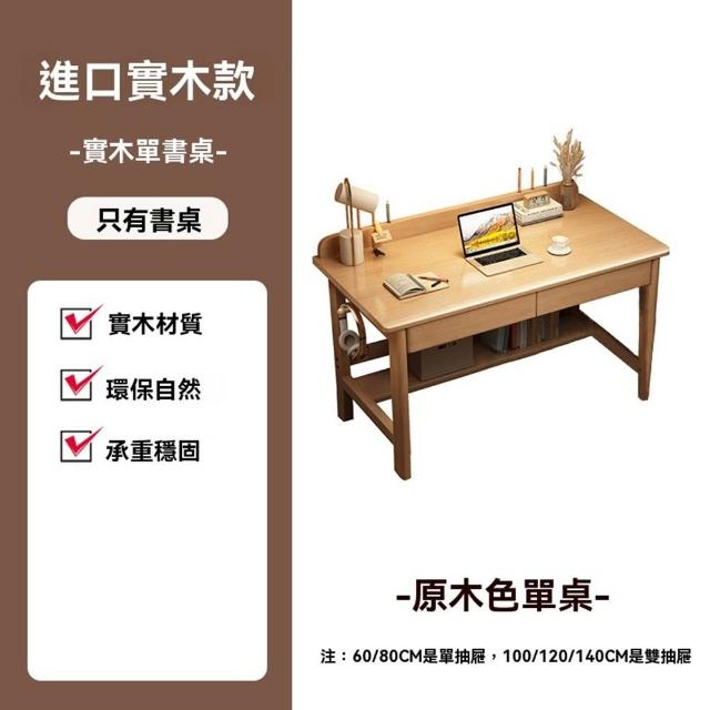 赫朗 實木書桌 電腦桌 辦公桌 寫字桌 工作臺 承重穩固(簡易安裝/40cm寬敞桌面/帶儲物抽屜)