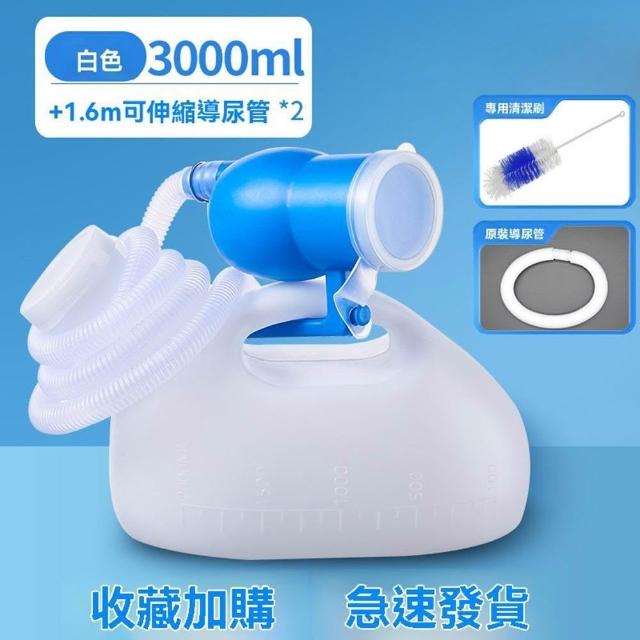 赫朗 老年人尿壺 夜壺 男用大容量尿壺 臥床尿壺 小便壺 送清潔刷(坐躺兩用/1.6米伸縮導尿管/大口徑壺口)