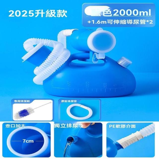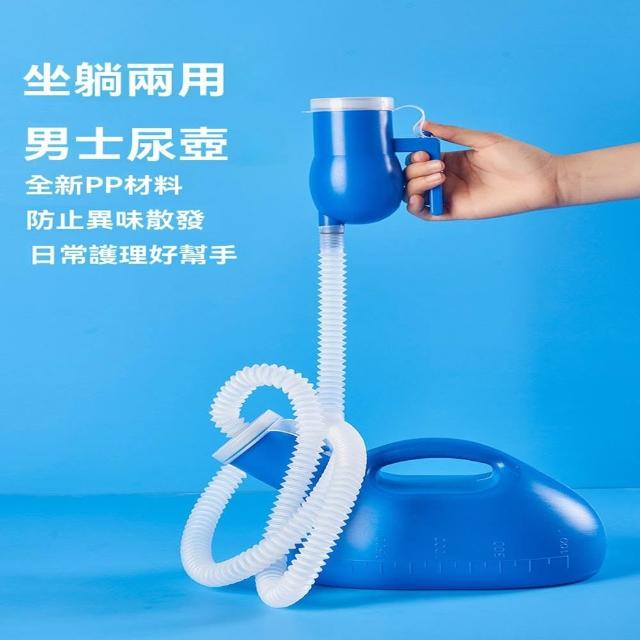 赫朗 老年人尿壺 夜壺 男用大容量尿壺 臥床尿壺 小便壺 送清潔刷(坐躺兩用/1.6米伸縮導尿管/大口徑壺口)