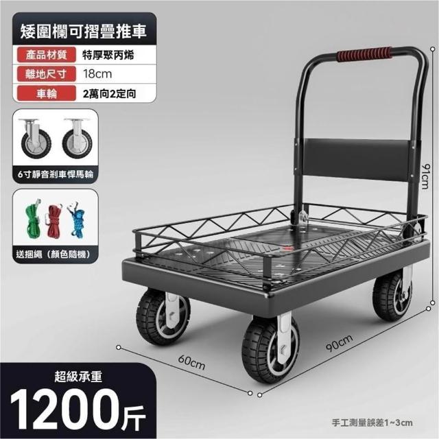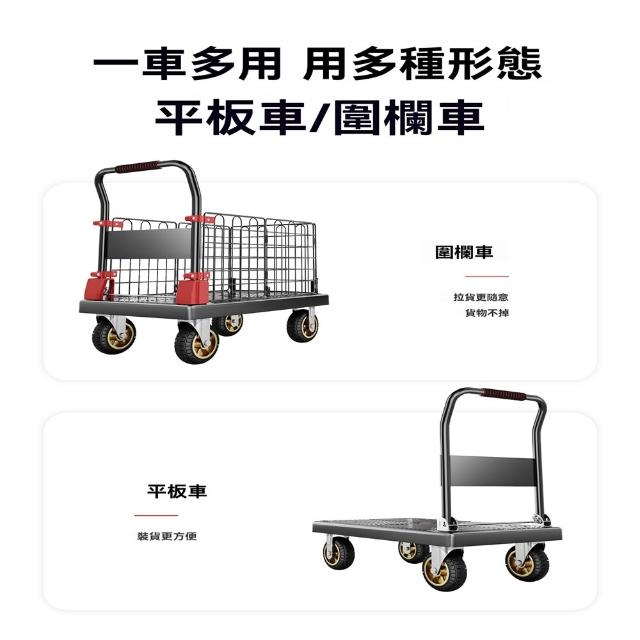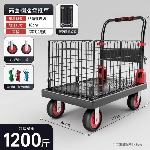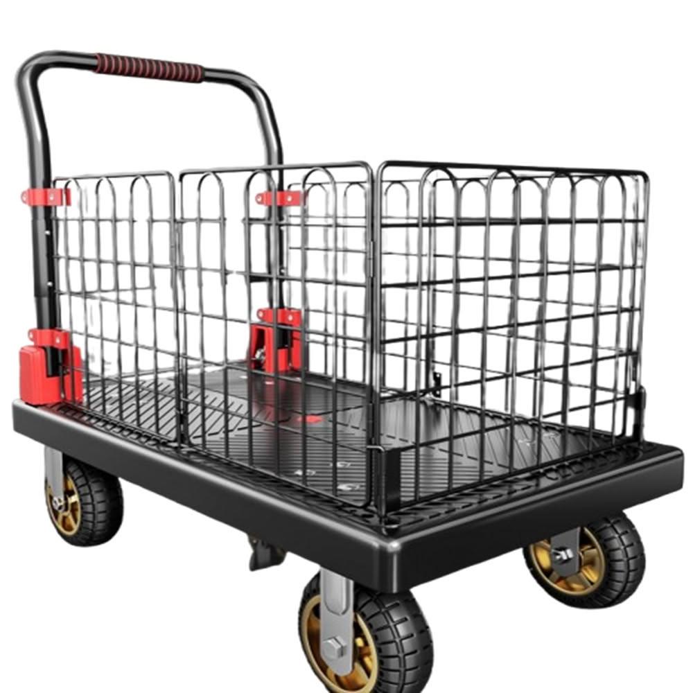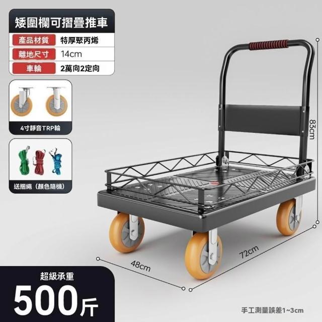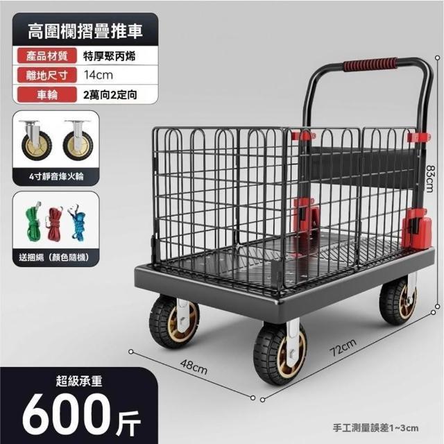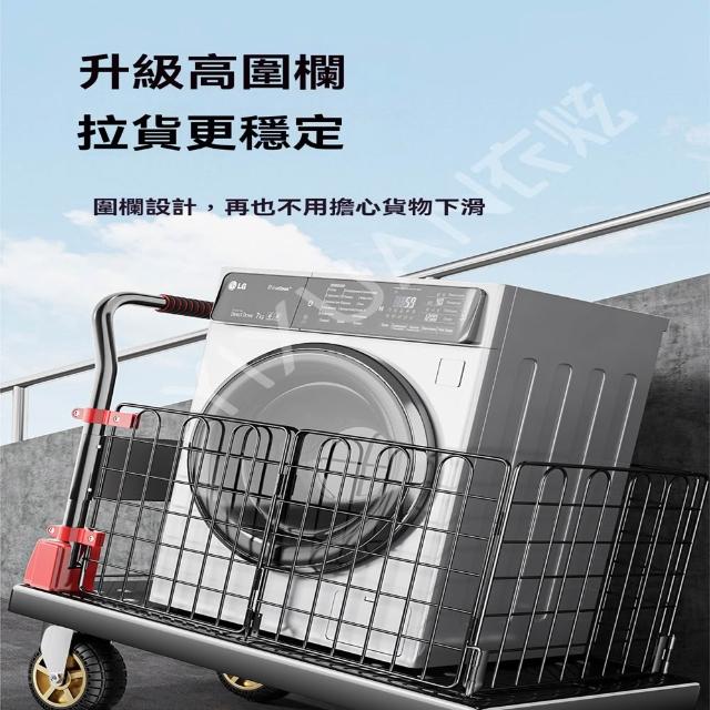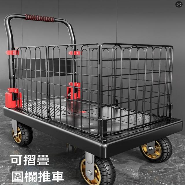 (赫朗)折疊手推車 推車 平板推車 購物小推車 折疊輕便家用拖車小推車(送捆繩/可拆卸圍欄/海綿扶手)