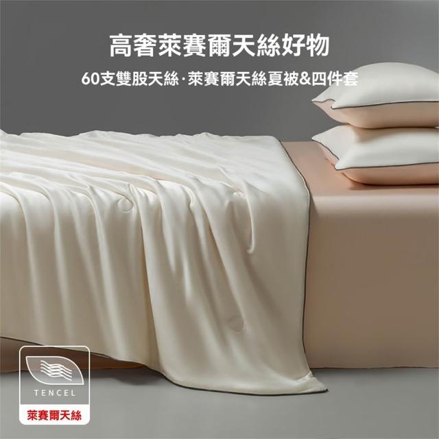 (赫朗)夏季天絲被 空調被 雙人被芯 可機洗水洗 四件套 (夏被+床單+枕套)