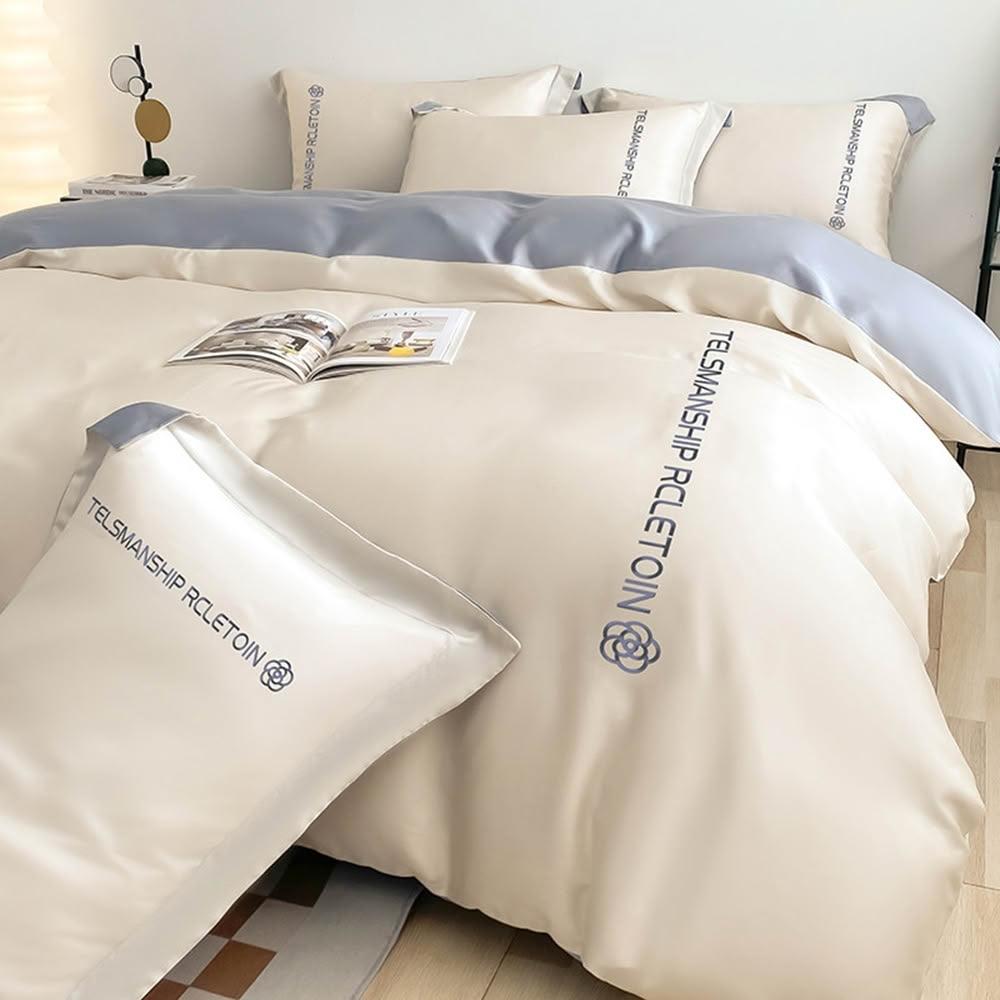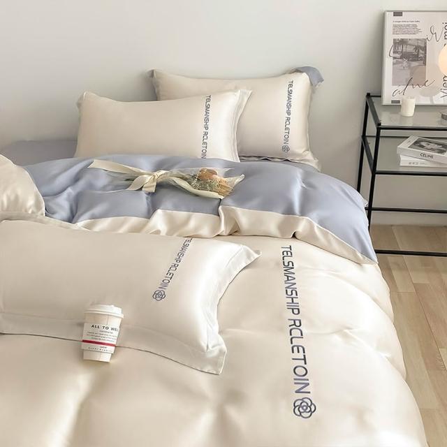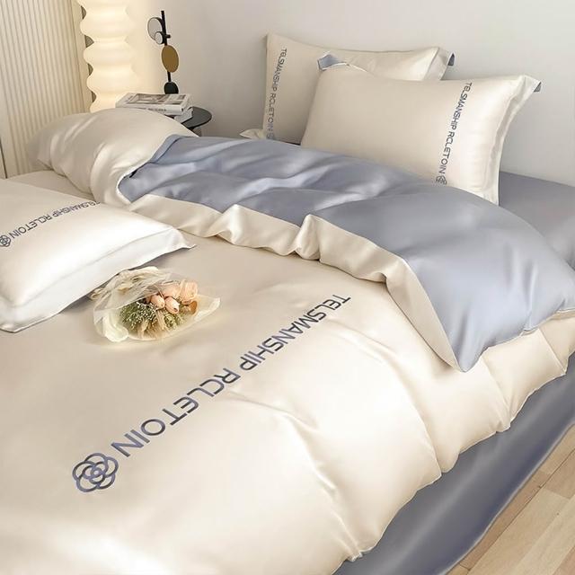 (赫朗)絲滑感床包被套組 單人雙人加大特大 床單床套 冰絲床包四件組 被套(水洗真絲/涼感/刺繡)