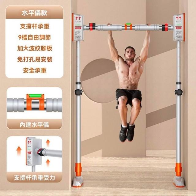 赫朗 落地雙支撐單杠 門上單槓 健身單槓 健身器材 室內單槓 兒童成人通用(免打孔/九檔高度調節/支架旋鈕調節)