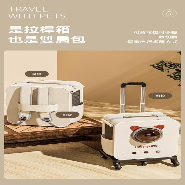 (赫朗)寵物拉桿箱 寵物外出包 寵物行李箱 透氣寵物拉桿箱 寵物雙肩包【萬向輪隨意移動/三檔高度調節】