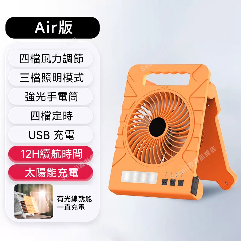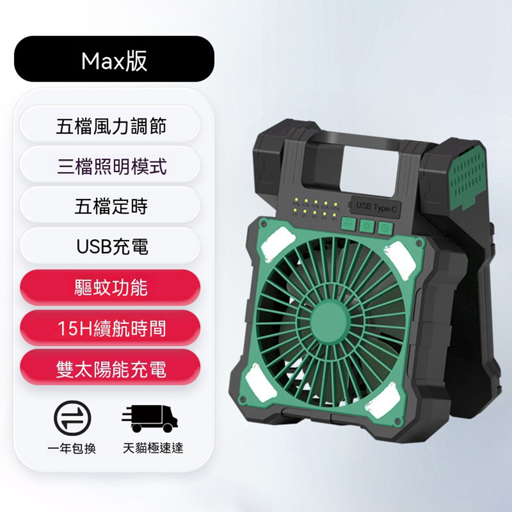 寵居社 太陽能風扇 戶外降溫神器 2026新款小風扇 特斯拉同款電池 應急照明(太陽能循環充電/四擋風速/可驅蚊)
