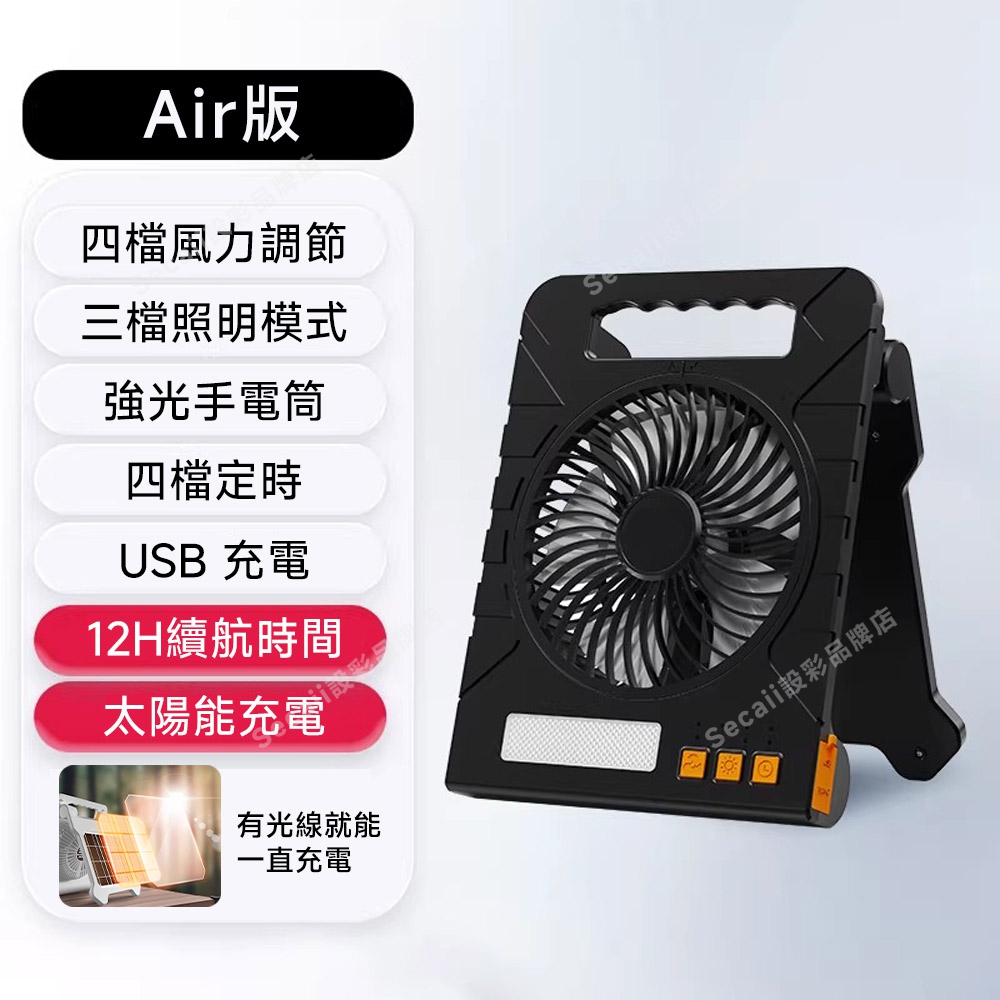 寵居社 太陽能風扇 戶外降溫神器 2026新款小風扇 特斯拉同款電池 應急照明(太陽能循環充電/四擋風速/可驅蚊)