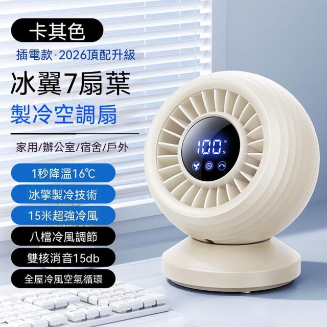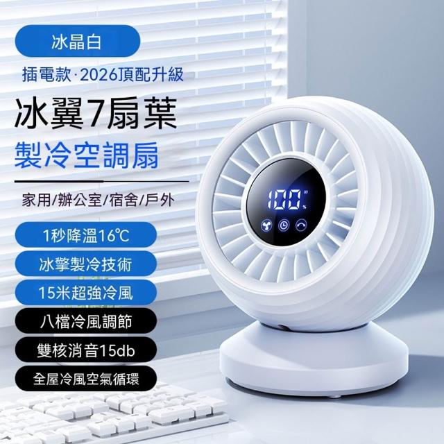派躍運動 七葉冰翼製冷空調扇 桌面風扇 製冷小空調 辦公室風扇(冰擎製冷/八檔冷風調節/自動搖頭)