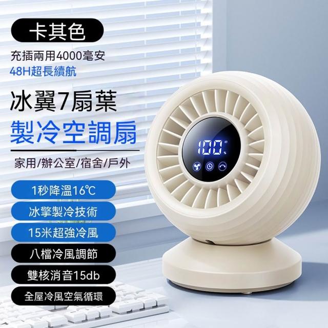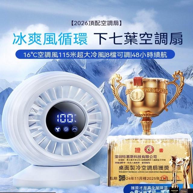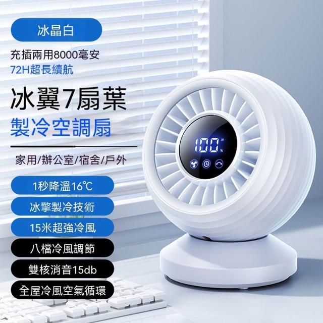 派躍運動 七葉冰翼製冷空調扇 桌面風扇 製冷小空調 辦公室風扇(冰擎製冷/八檔冷風調節/自動搖頭)