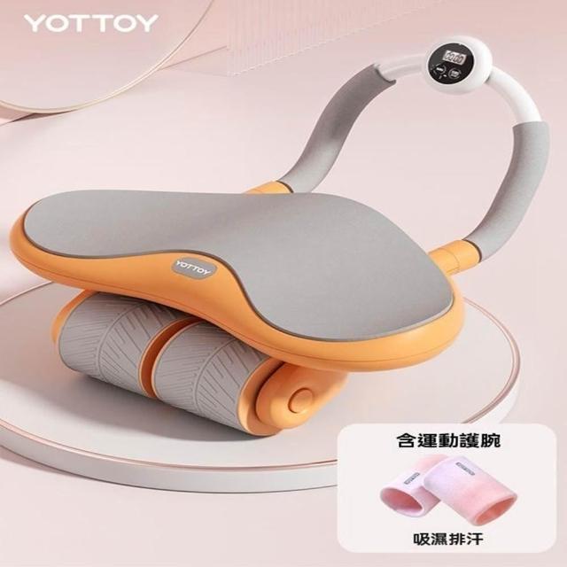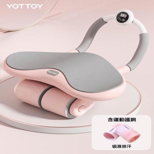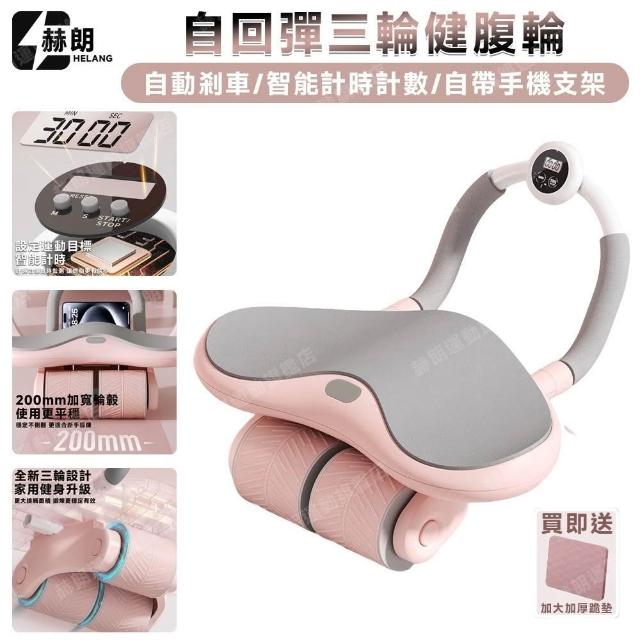 派躍運動 女士健腹輪 自動回彈 健身器材 卷腹輪 擴胸 贈跪墊(自回彈三輪/智能計時計數/自帶手支架)