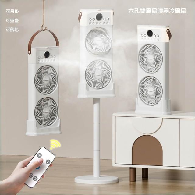 寵居社 桌面小風扇 噴霧製冷小風扇 辦公室宿舍風扇 電風扇 可擺台可吊掛可落地(6孔冷風加濕/可加冰塊)