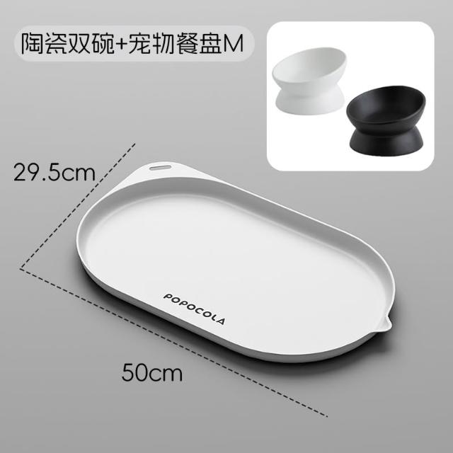 POPO黑色貓碗 陶瓷水碗 寵物喝水碗 斜口貓食盆 貓盆貓咪保護頸椎黑碗