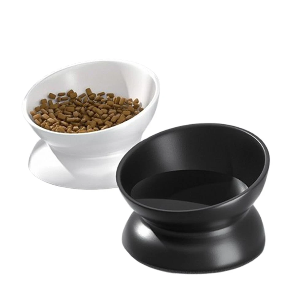 POPO黑色貓碗 陶瓷水碗 寵物喝水碗 斜口貓食盆 貓盆貓咪保護頸椎黑碗