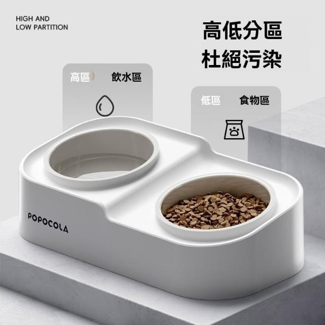 POPO貓碗陶瓷雙碗 護頸貓食盆 防打翻寵物貓咪喝水碗 貓糧飯碗狗狗碗