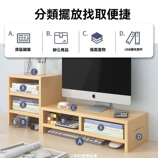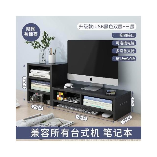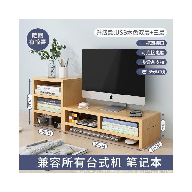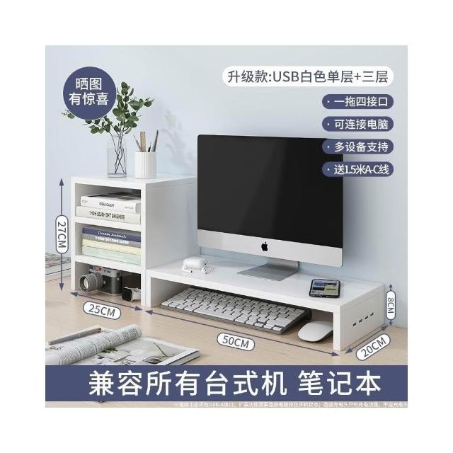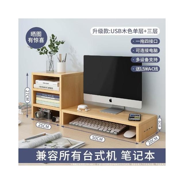 ECOCO 升級款USB電腦增高架 螢幕增高架 電腦螢幕架 電腦增高架 電腦架 螢幕架 鍵盤架 側面USB擴展