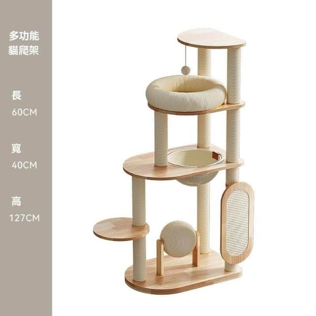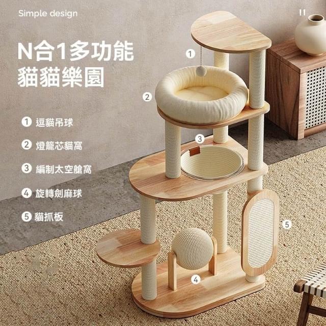 POPO 實木猫爬架 藤編猫窩 一體太空艙大型猫架 貓窩 貓抓柱 貓跳台 貓跳臺 貓爬架 劍麻材質 多功能設計 厚實實木
