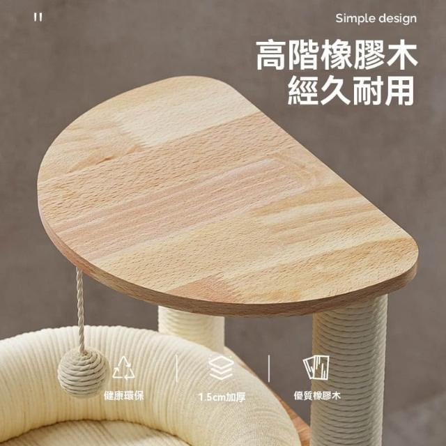 POPO 實木猫爬架 藤編猫窩 一體太空艙大型猫架 貓窩 貓抓柱 貓跳台 貓跳臺 貓爬架 劍麻材質 多功能設計 厚實實木