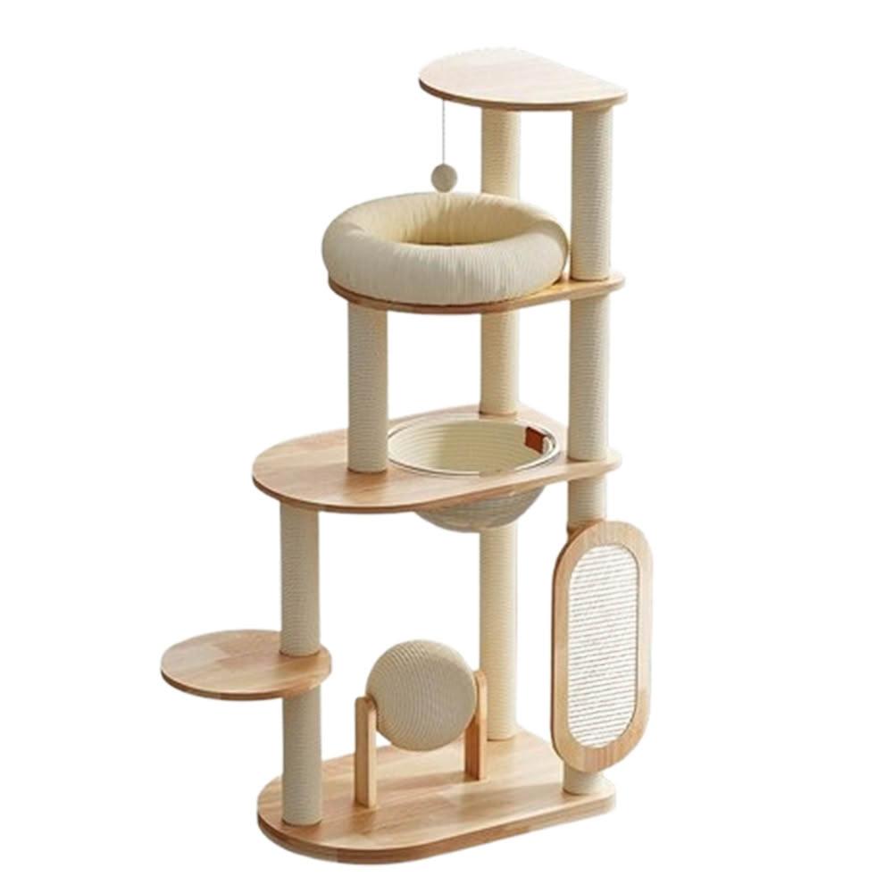 POPO 實木猫爬架 藤編猫窩 一體太空艙大型猫架 貓窩 貓抓柱 貓跳台 貓跳臺 貓爬架 劍麻材質 多功能設計 厚實實木
