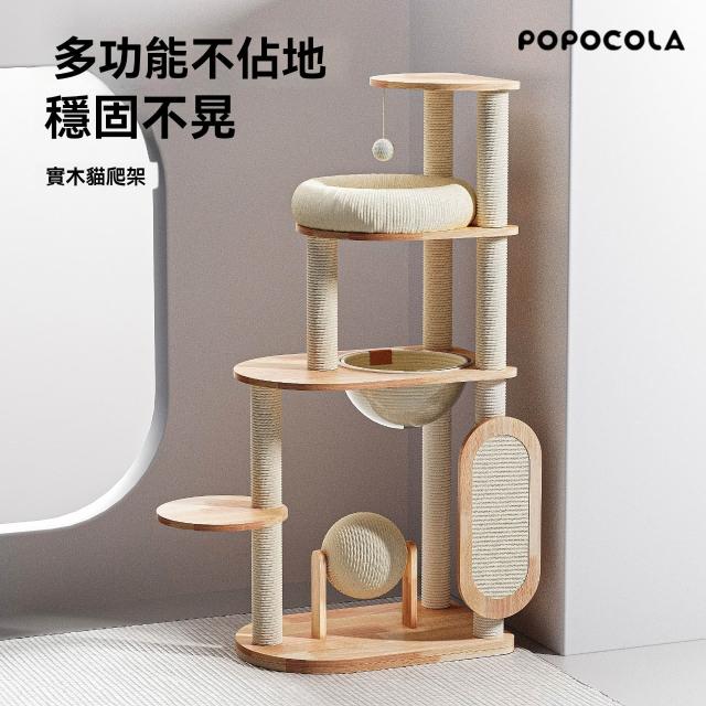 POPO 實木猫爬架 藤編猫窩 一體太空艙大型猫架 貓窩 貓抓柱 貓跳台 貓跳臺 貓爬架 劍麻材質 多功能設計 厚實實木