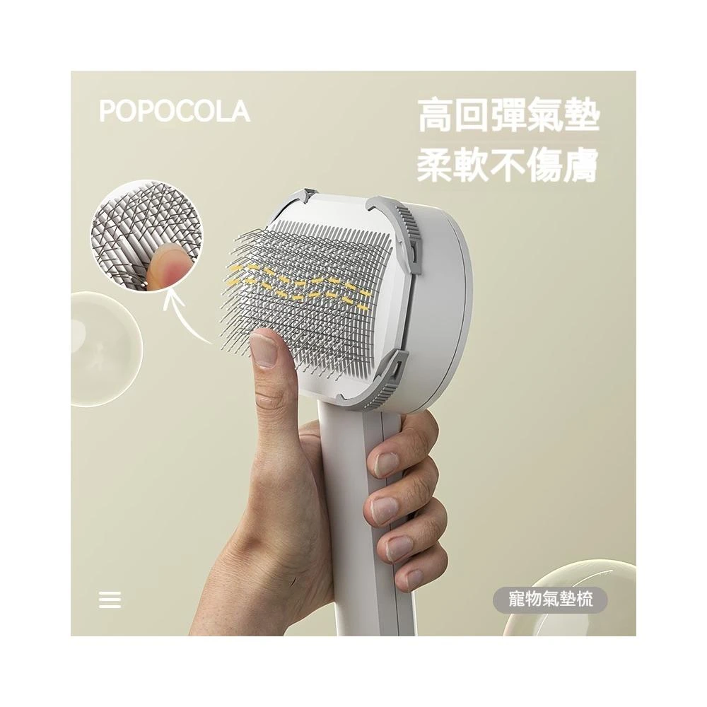 POPO 短毛貓專用梳子 去浮毛神器 寵物貓毛刷 氣墊自潔梳 貓咪打薄梳毛刷 一鍵除毛 彈性氣墊 不鏽鋼梳針