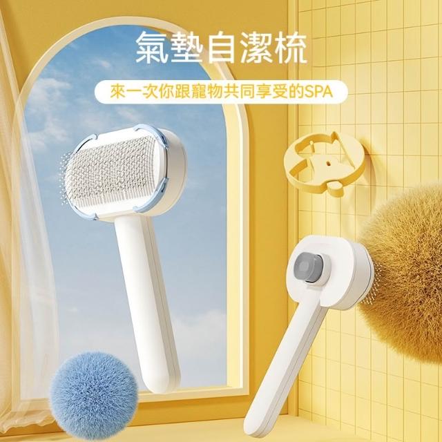 POPO 短毛貓專用梳子 去浮毛神器 寵物貓毛刷 氣墊自潔梳 貓咪打薄梳毛刷 一鍵除毛 彈性氣墊 不鏽鋼梳針