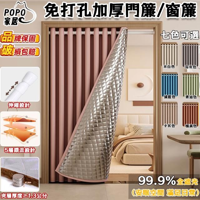POPO家居免打孔加厚門簾/窗簾 隔音+隔熱+99.9%遮光 隔斷簾 隔音棉 遮光簾 隔熱簾 送伸縮桿