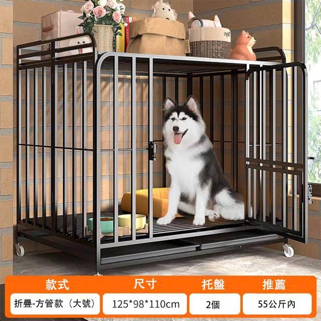 歐德沐可折疊加粗方管寵物籠 鐵藝狗籠 籠子 帶厠所寵物籠 室內加粗方管狗屋 可水洗抽拉廁所托盤