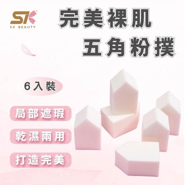 SK BEAUTY完美裸肌五角粉撲 6入組 化妝粉撲 乾濕兩用化妝撲 BB粉撲 化妝棉 海綿 散粉 通用 乾濕兩用