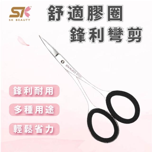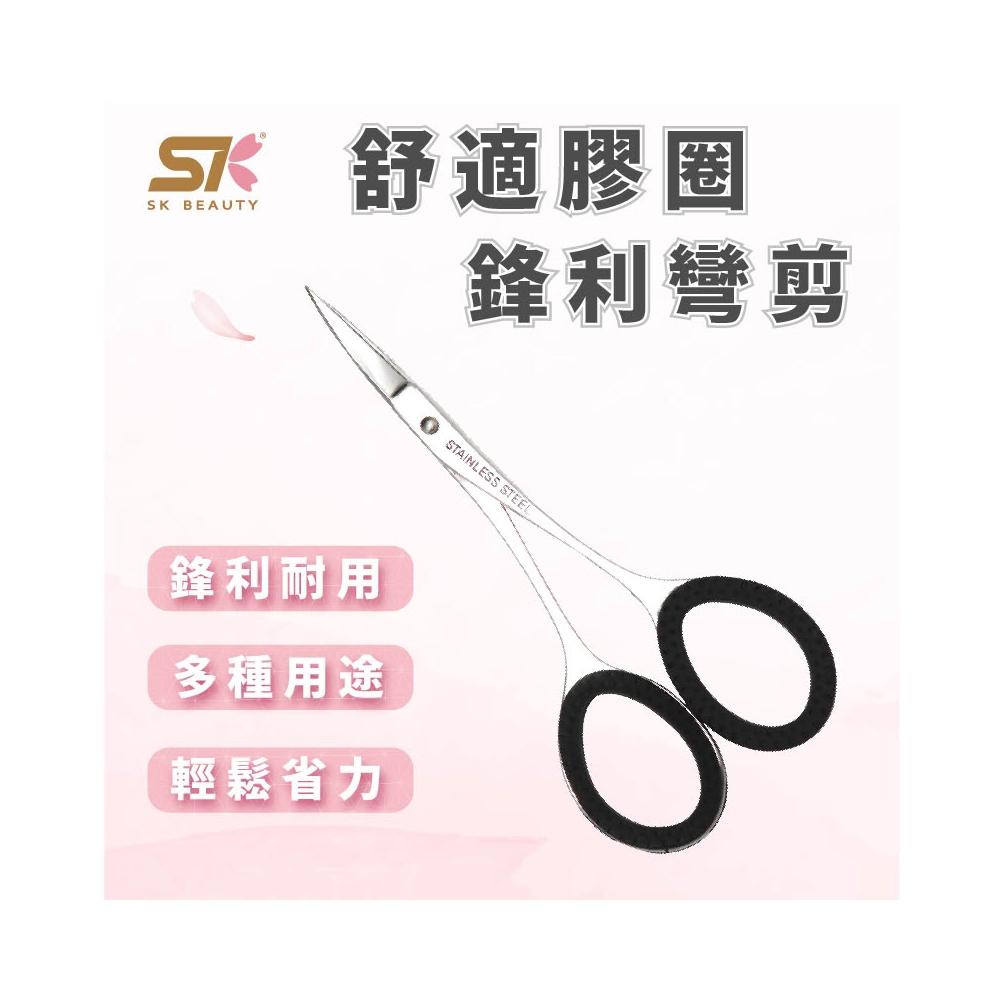 SK BEAUTY 舒適膠圈鋒利彎剪 小剪刀 指甲刀 修眉剪刀 美容小剪刀 彎剪 不鏽鋼美容直剪