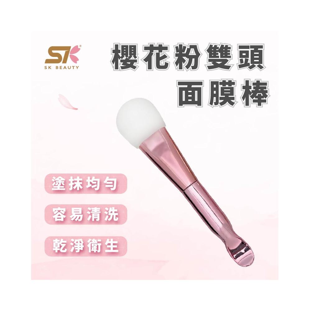 SK BEAUTY 櫻花粉雙頭面膜棒 雙頭兩用敷臉面膜刷 面膜勺 面膜刷 矽膠面膜刷 矽膠面膜勺 刮勺挖棒 泥膜刷