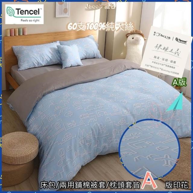 Jacob 雅各60支100%純 天絲 床包組 可加購 鋪棉兩用 被套 蘭精聯名認證吊牌 台灣製造 天絲床包組 單人床包 雙人床包 加