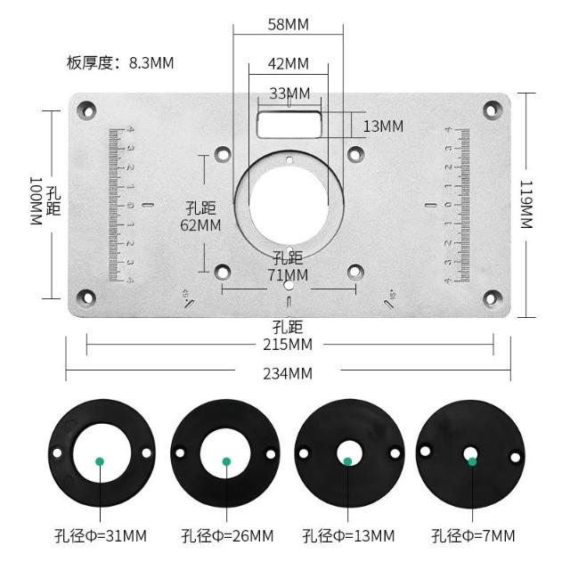 豪划算 木工修邊機 倒裝板 修邊機倒裝板 鋁合金 倒裝面版 倒裝 工作臺 四種孔洞 通用型 多種機型適用