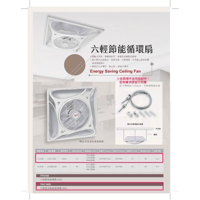 TAISHIBA 台芝輕鋼架DC變頻循環扇 TGC-160D 台灣製造 白色/黑色