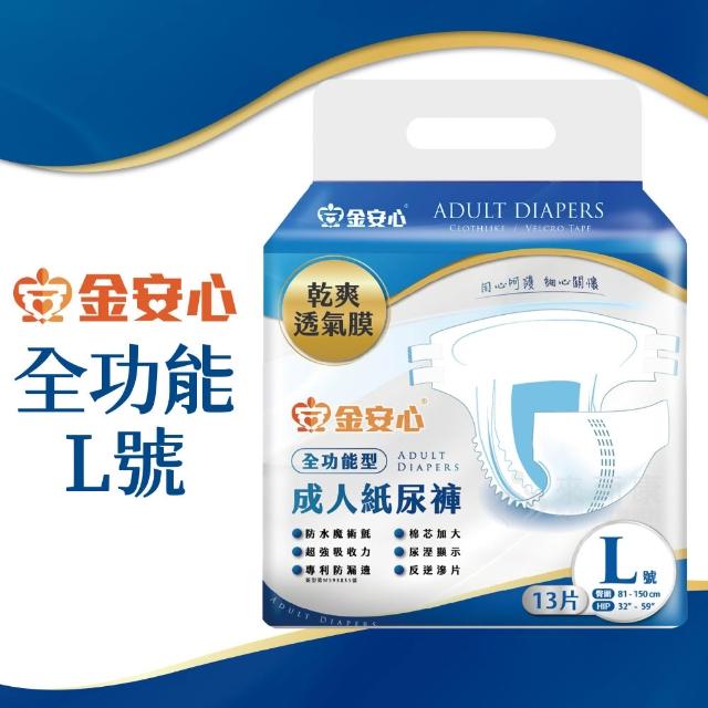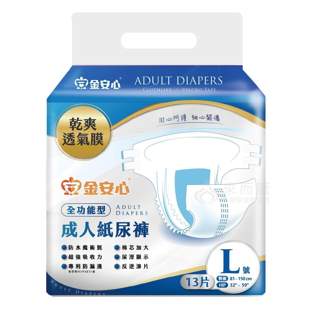 來而康 金安心 全功能型 成人紙尿褲 L號 13片/包 一箱6包販售 乾爽透氣 立體防漏側邊 成人尿布 成人尿褲
