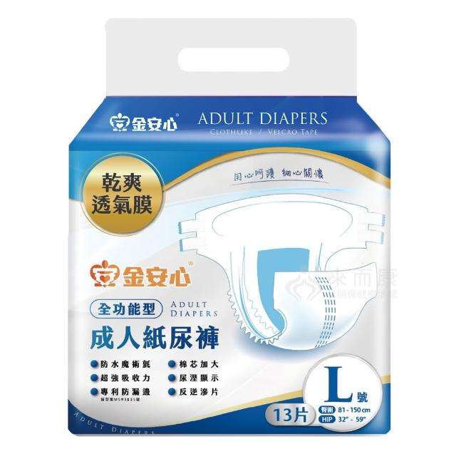 來而康 金安心 全功能型 成人紙尿褲 L號 13片/包 一箱6包販售 乾爽透氣 立體防漏側邊 成人尿布 成人尿褲
