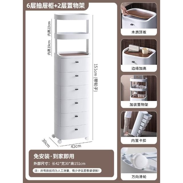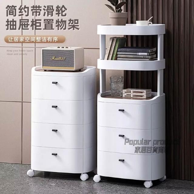 免運 高品質帶滾輪抽屜式收納柜 客廳多層置物架 家用夾縫儲物柜子 日式臥室床頭柜 收納架 置物架 儲物架 儲物櫃