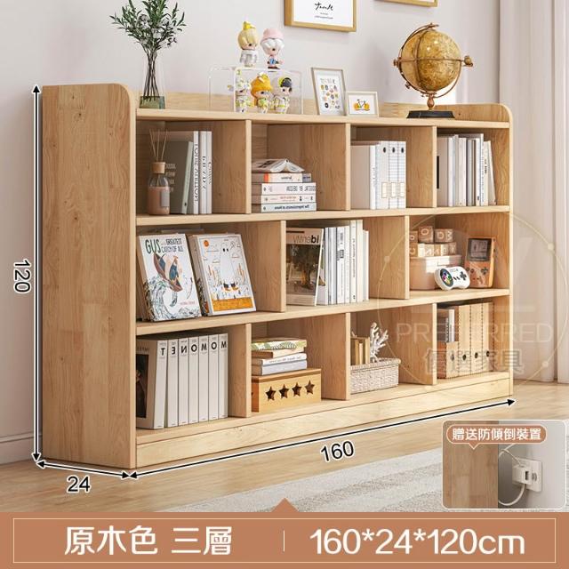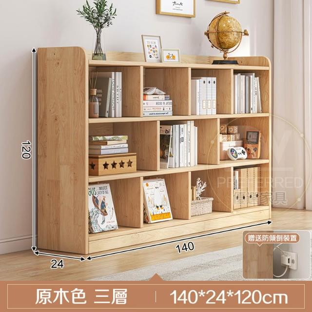 🔥免運 現代簡約 原木書櫃 三層櫃 矮書櫃 實木書櫃 幼稚園書櫃 幼兒書櫃 書架置物架 落地書架 木製書架