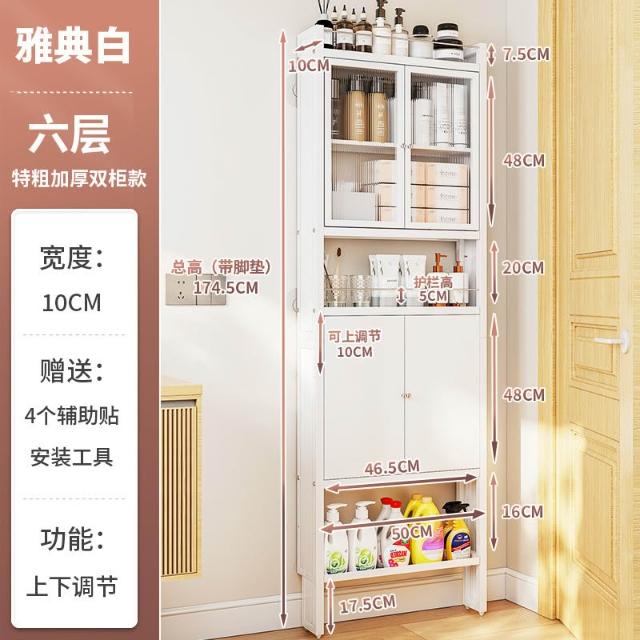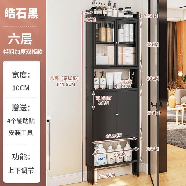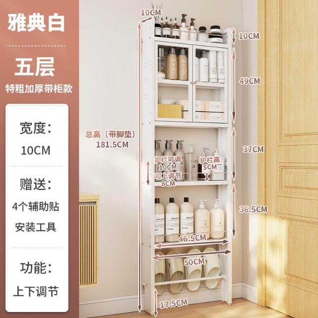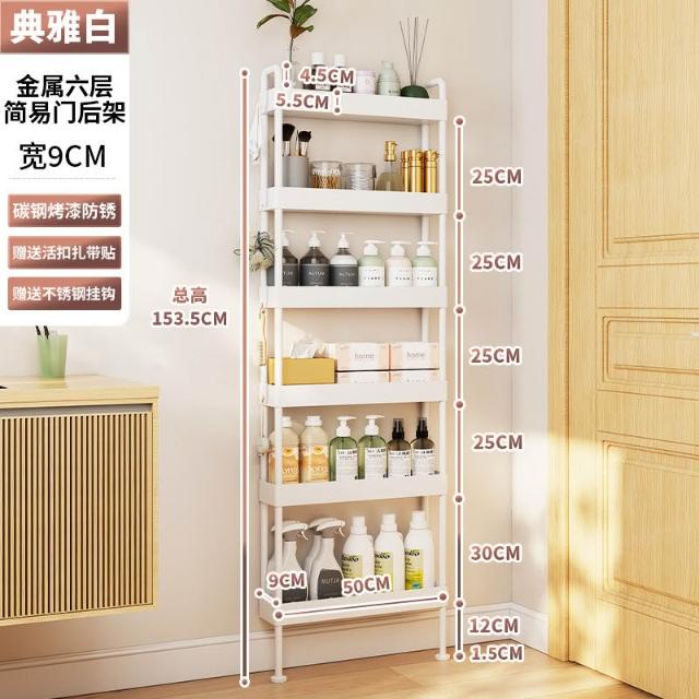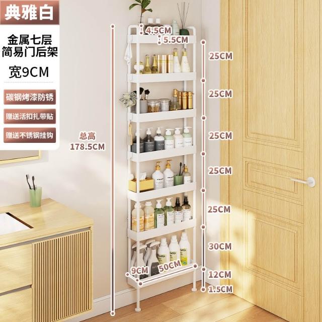 衛生間門後置物架 超薄置物架 落地置物架 浴室置物架 廁所置物架 洗手間縫隙10cm窄縫置物架 極窄收納櫃 夾縫收納櫃