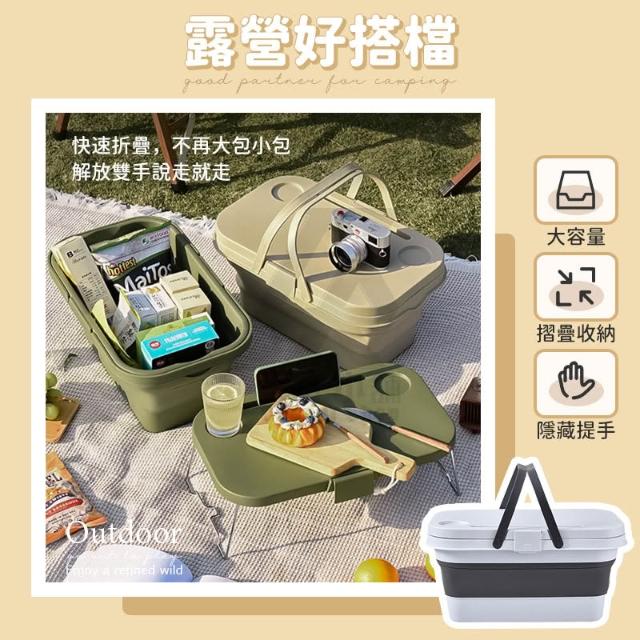 免運費 露營摺疊籃 野餐籃 野餐桌 手提籃 野營 折疊 露營野餐籃 摺疊收納籃 收納箱 置物籃 野餐提籃
