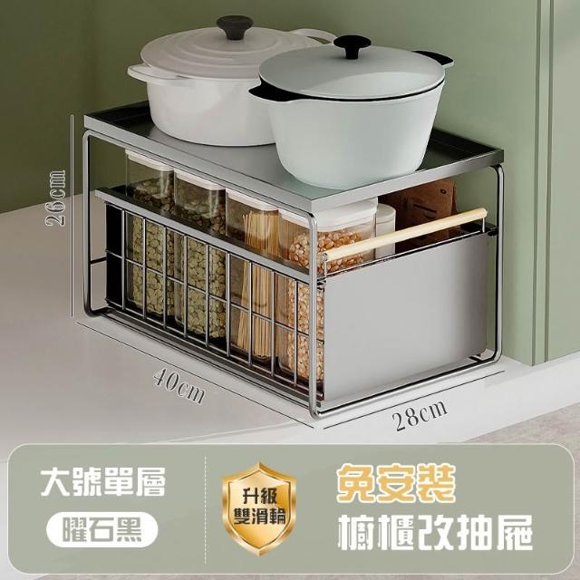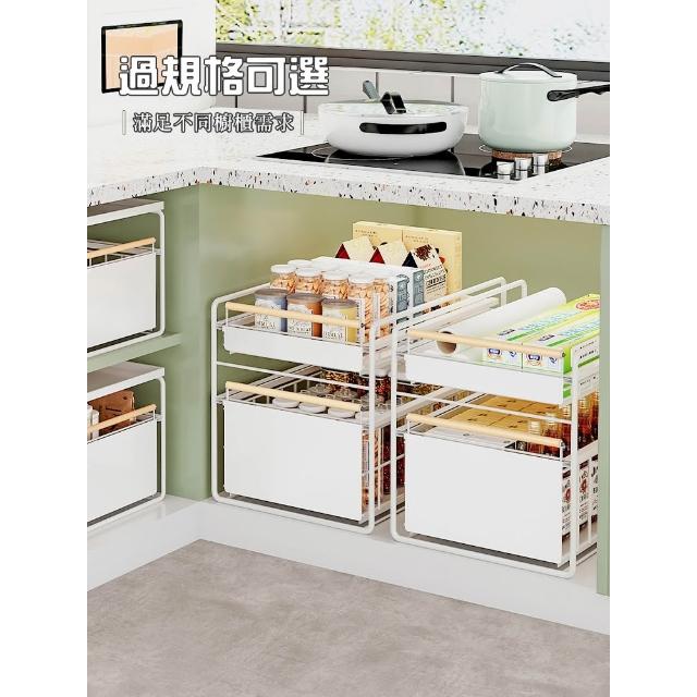 💝廚下抽拉櫃 下水槽置物架 廚房雙層收納架 免安裝抽拉式 分層架 櫥櫃拉籃 層架