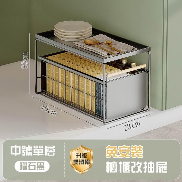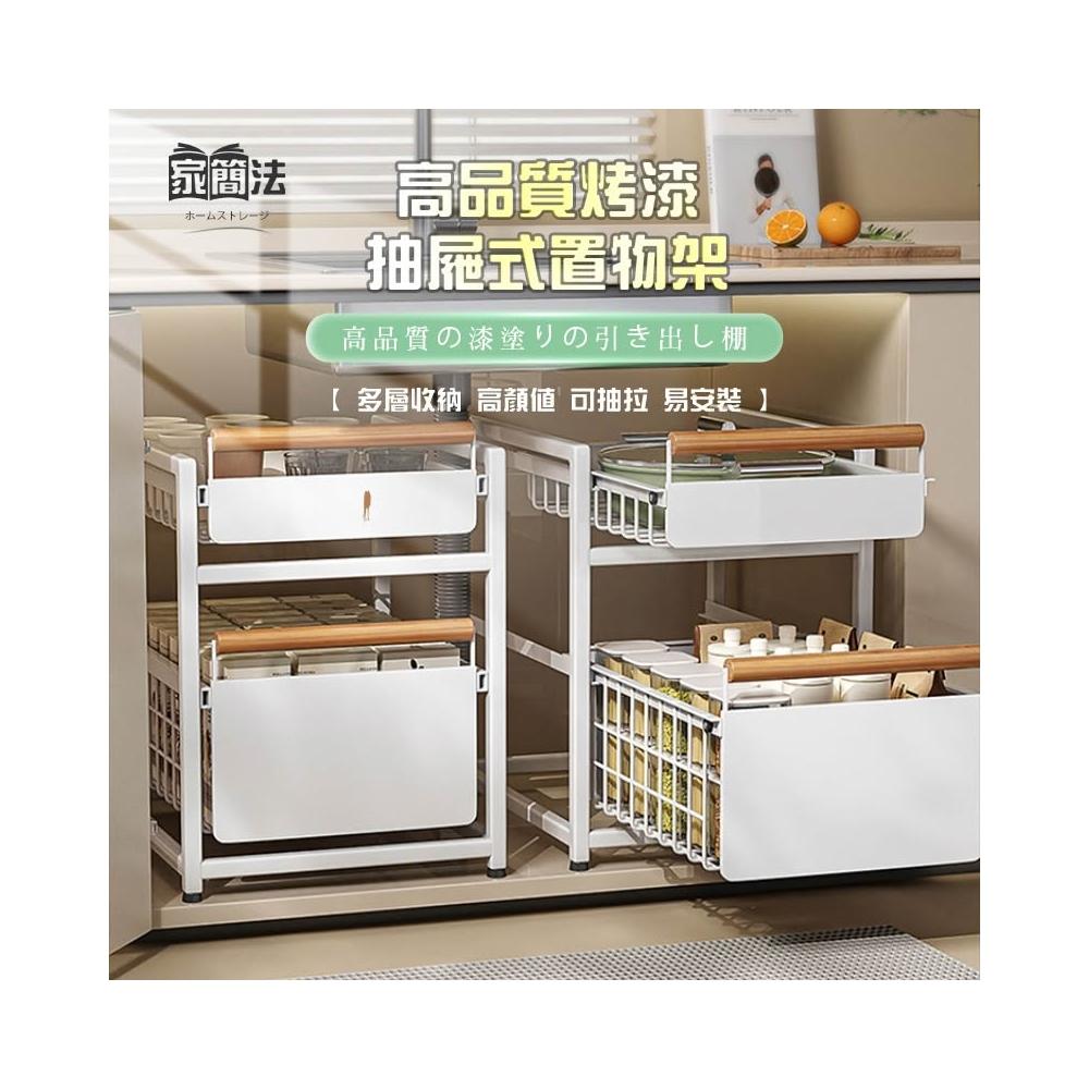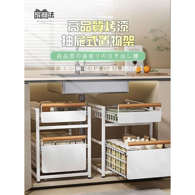 💝廚下抽拉櫃 下水槽置物架 廚房雙層收納架 免安裝抽拉式 分層架 櫥櫃拉籃 層架