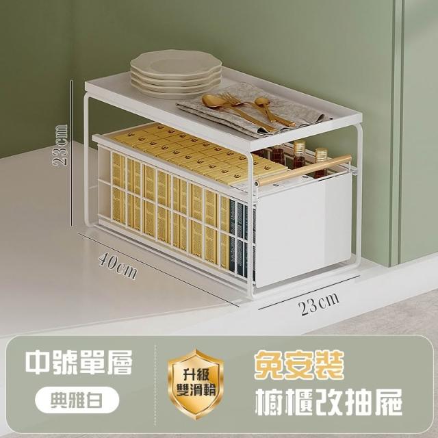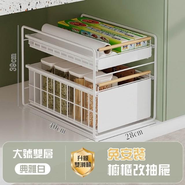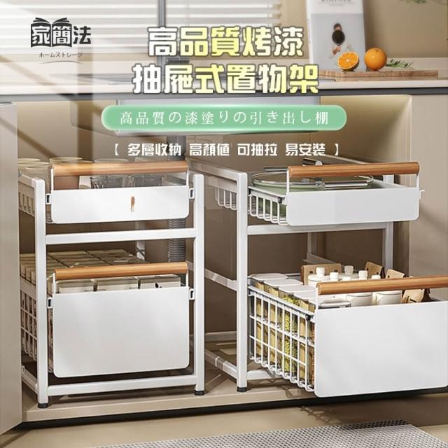 💝廚下抽拉櫃 下水槽置物架 廚房雙層收納架 免安裝抽拉式 分層架 櫥櫃拉籃 層架