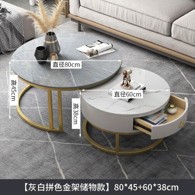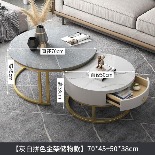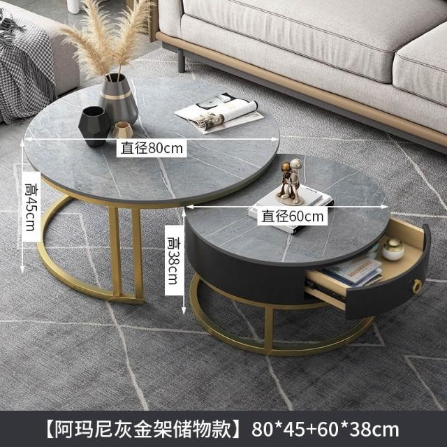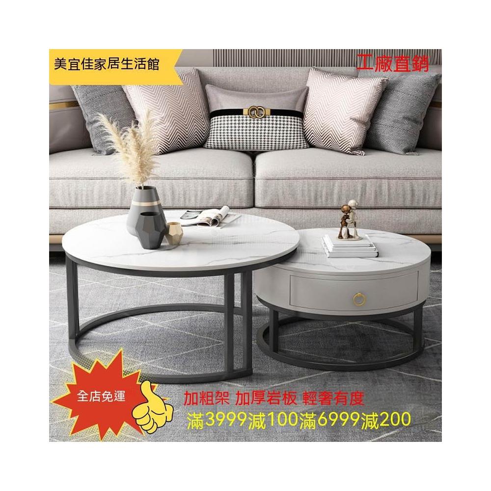 免運 轻奢岩板茶几组合现代简约小户型客厅家用字母大小圆意式圆形茶几