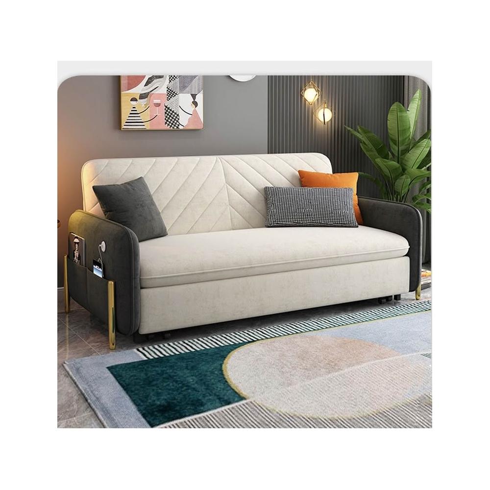 免運 抽拉沙发床坐卧两用阳台简易多功能小户型可折叠绒布床储物可拆洗