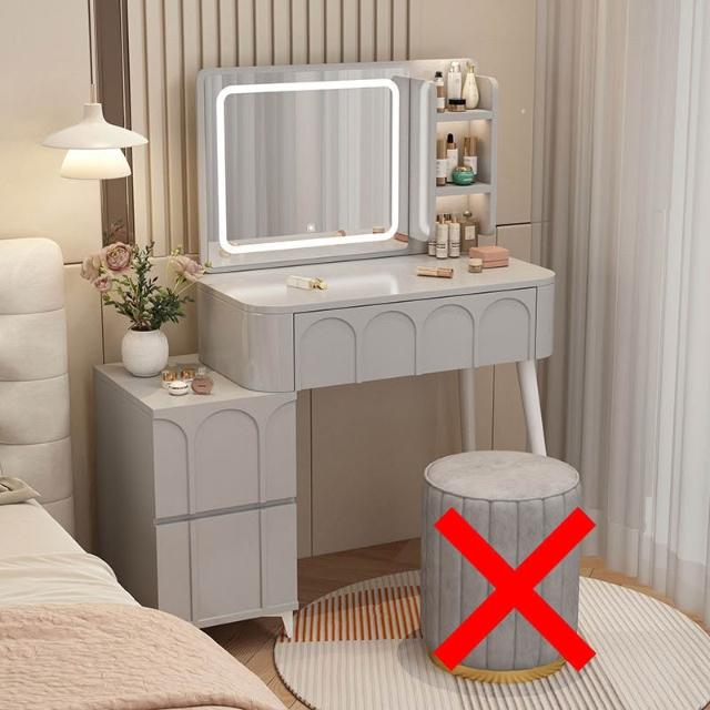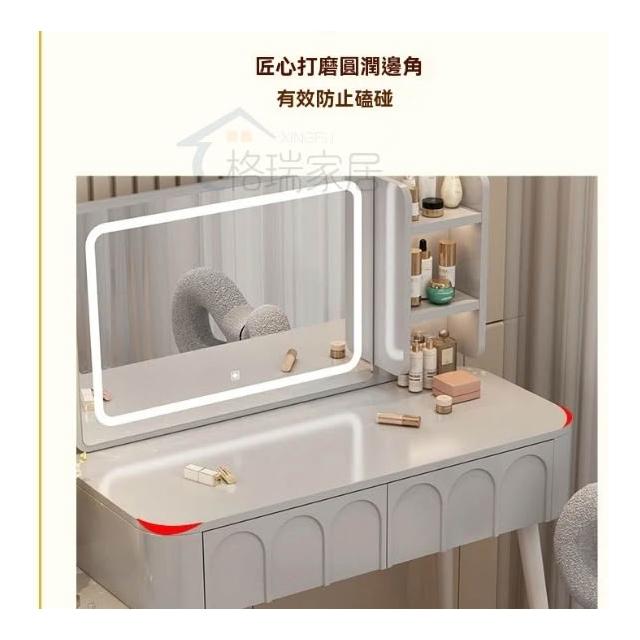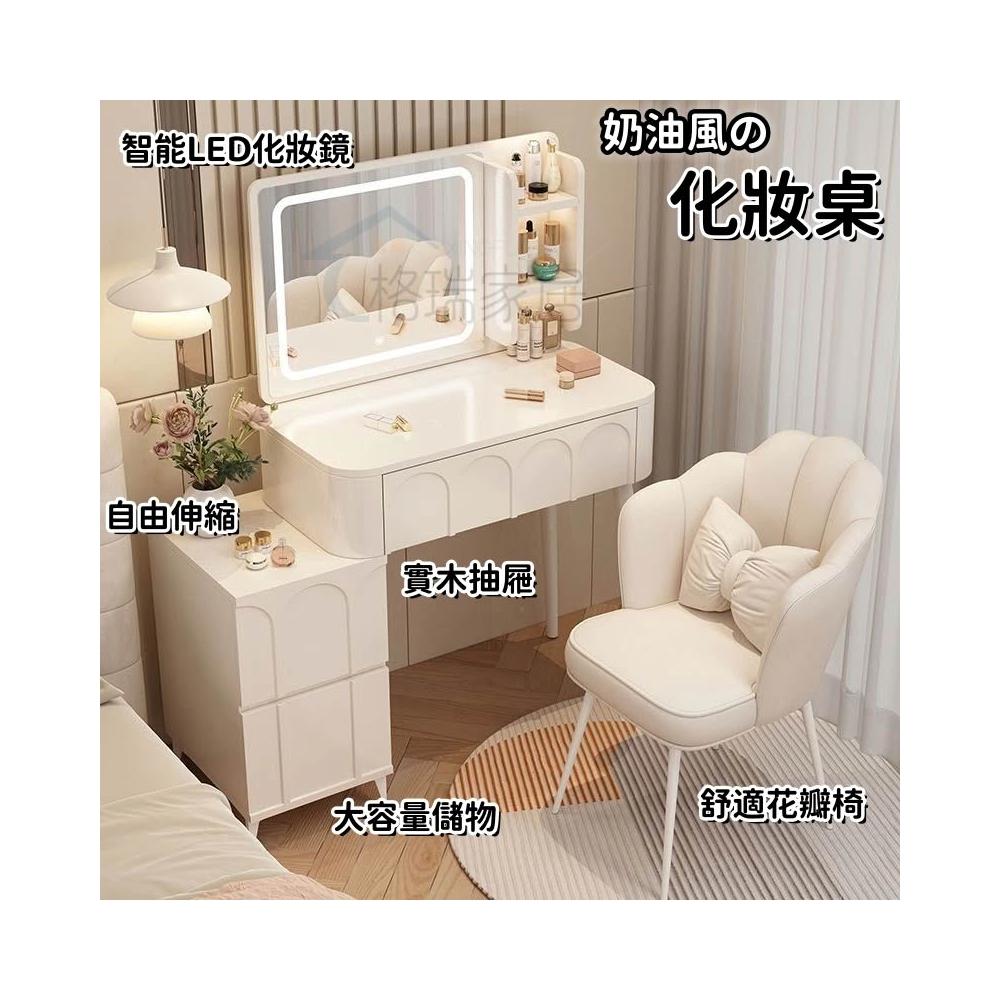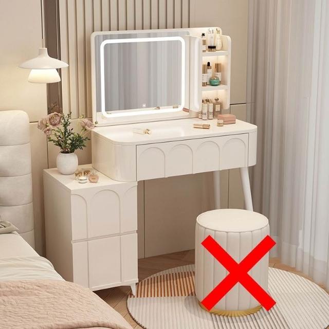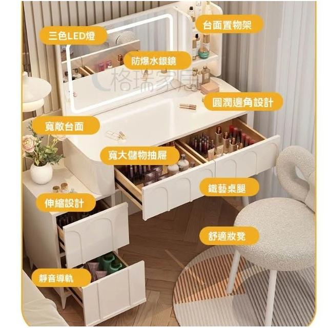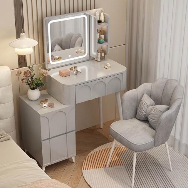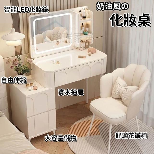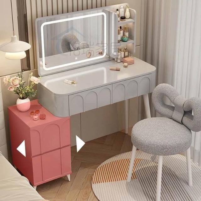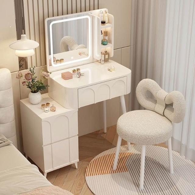 ⚡免運 免組裝 奶油風化妝桌 化妝桌 化妝台 梳妝台卧室現代簡約小戶型奶油風化妝桌床頭收納斗櫃書桌鏡子一體