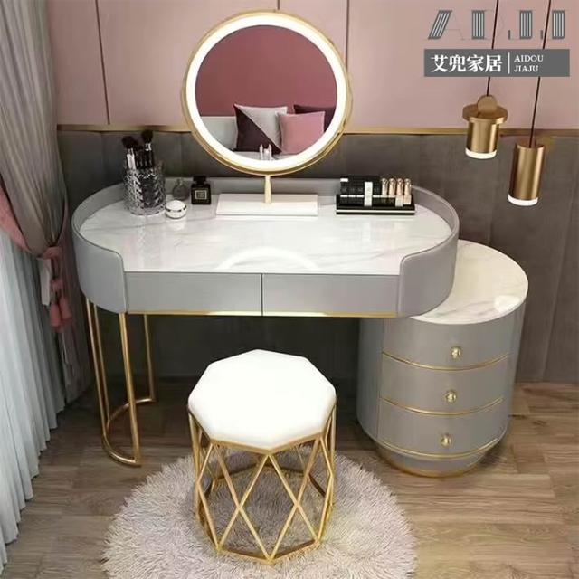 免運費 免安裝 歐式化妝台 化妝桌 化裝鏡 梳妝台 梳妝桌 梳妝檯 化妝臺 收納櫃 智能高檔北歐實木書桌