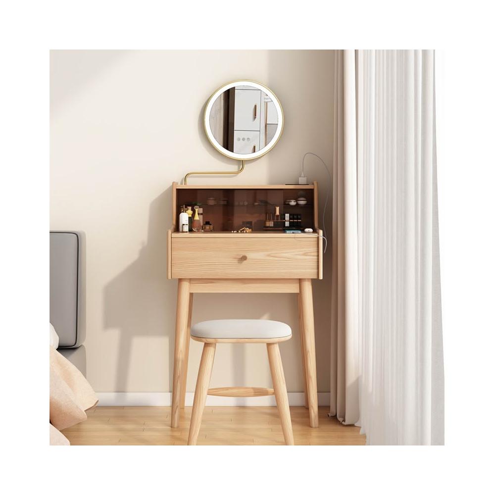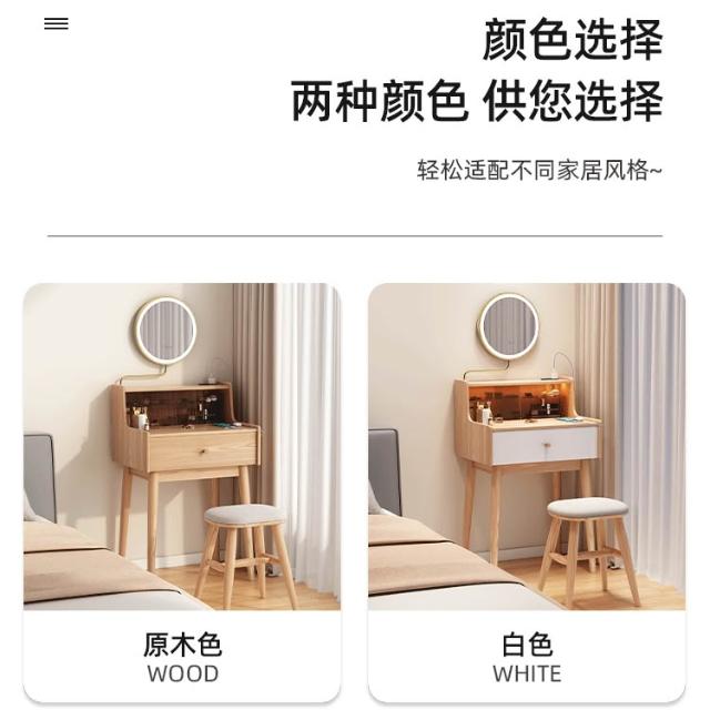 化妝桌 梳妝台 邊桌 日式梳妝檯小型50cm全實木臥室迷你化妝台60cm小戶型帶燈鏡化妝桌