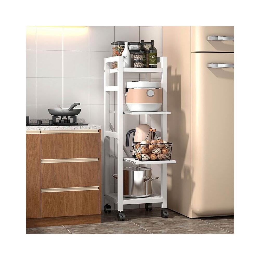 折疊式廚放抽拉式置物架收納層架白色抽拉電器櫃電器架落地滾輪可移動式客廳多功能多層縫隙窄夾縫收納架五層電鍋架