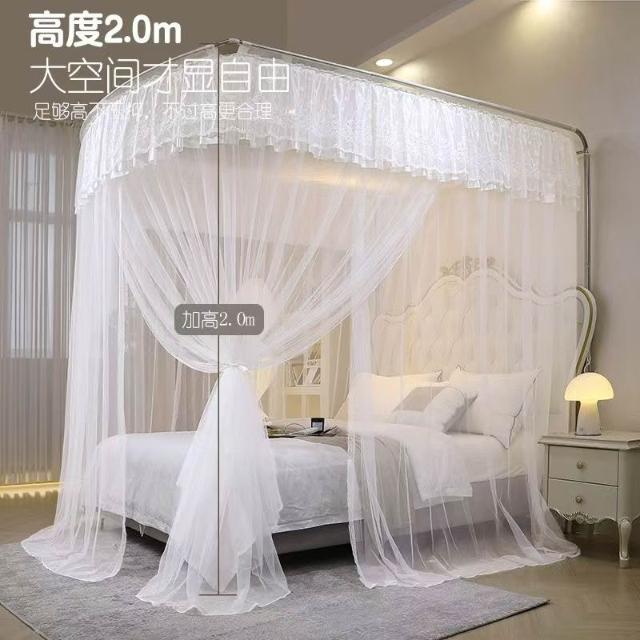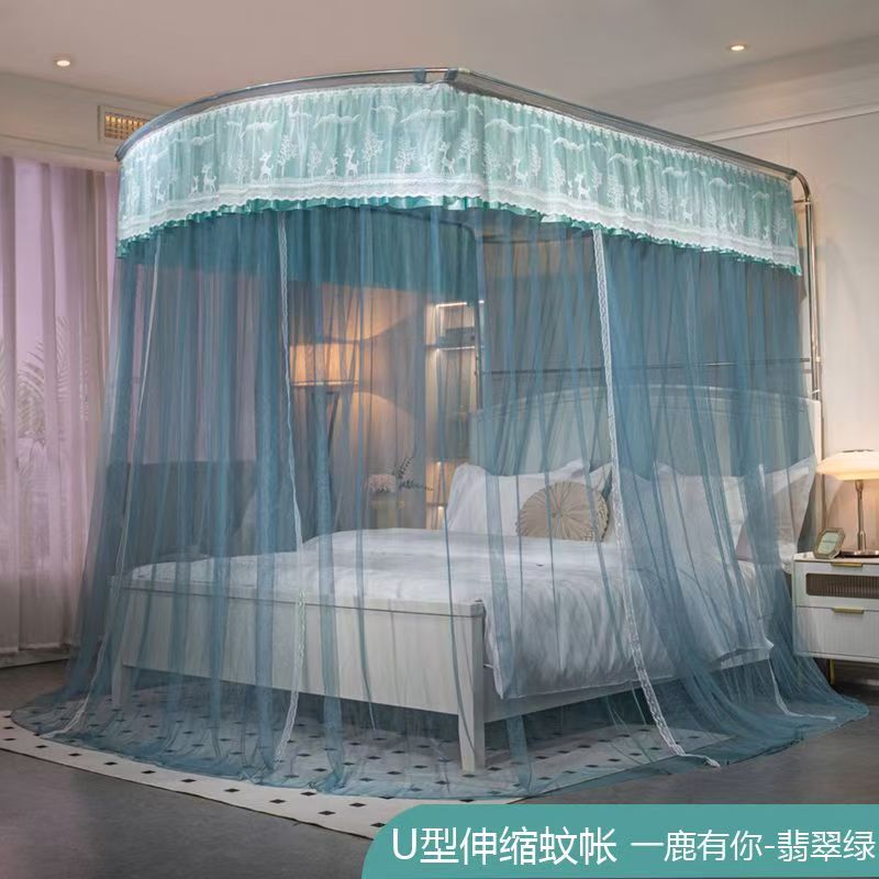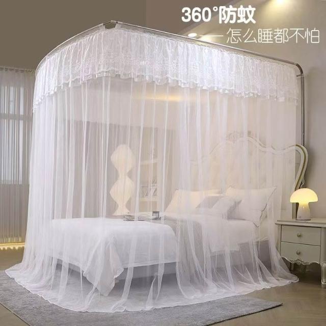 蚊帳 兒童床蚊帳 U型蚊帳 可伸縮 加大蚊帳 雙人蚊帳 防塵蚊帳 遮光蚊帳U型可伸縮宮廷風家用蚊帳2024新款三開門落地